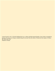 Lauren Sowell is AN 13 YEAR Trafficked Survivor, Author and Motivational Speaker. From Trials to triumph her process of Living in my Purpose includes being free not just from the chains of trauma but the iniquity of silence. BE FREE BE MAD