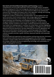 Rare Earth and Critical Mineral Operations and Processing offers a clear, up-to-date overview of the technologies, policies, and global forces shaping this strategically vital sector. It explains the full value chain—from geology and mining to comminution, beneficiation, refining, recycling, and low-carbon processing. The book shows how rare earths and critical minerals support clean energy, digital technologies, and advanced manufacturing, with discussions of environmental management, circular-economy principles, ESG, and modern automation. Case studies from Australia, the United States, and Asia demonstrate real-world applications. The text also explores economic and geopolitical dynamics, supply-chain resilience, and future innovation priorities. Designed for students, professionals, and policymakers, it serves as both a technical reference and a practical guide to the rapidly evolving critical-minerals landscape.