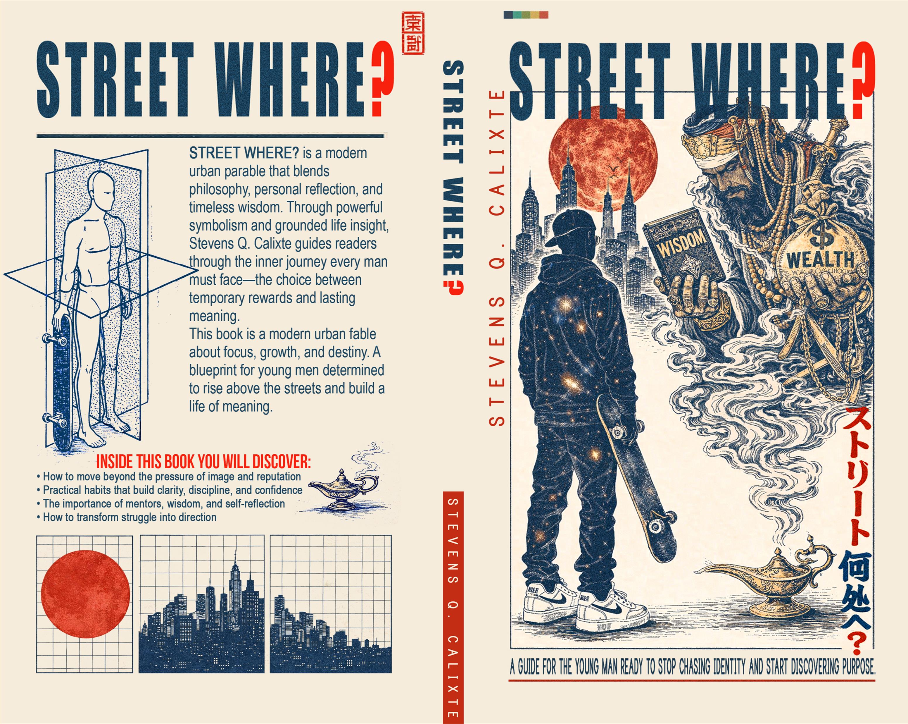 STREET WHERE? is a powerful self-discovery guide for young men searching for purpose beyond image, reputation, and external validation. Inspired by the timeless wisdom of the Aladdin folklore and the storytelling tradition of Arabian Nights, this modern urban parable follows the psychological and spiritual journey of a young man facing life's journey and self-awakening.