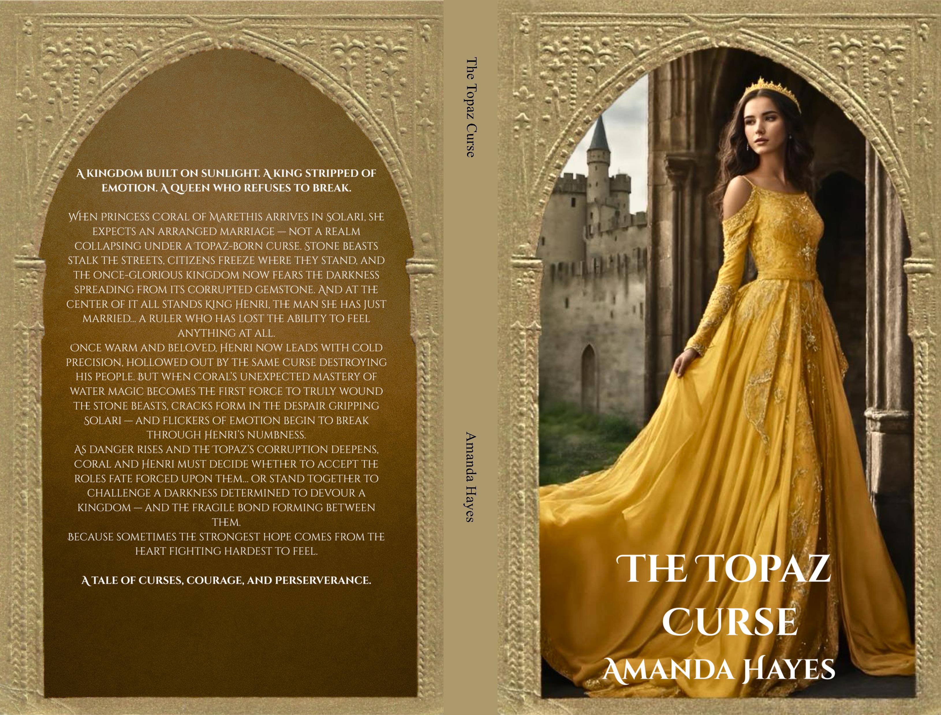 When Princess Coral of Marethis arrives in Solari, she expects an arranged marriage — not a realm collapsing under a Topaz-born curse. Stone beasts stalk the streets, citizens freeze where they stand, and the once-glorious kingdom now fears the darkness spreading from its corrupted gemstone. And at the center of it all stands King Henri, the man she has just married… a ruler who has lost the ability to feel anything at all. Once warm and beloved, Henri now leads with cold precision, hollowed out by the same curse destroying his people. But when Coral’s unexpected mastery of water magic becomes the first force to truly wound the stone beasts, cracks form in the despair gripping Solari, and flickers of emotion begin to break through Henri’s numbness.