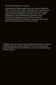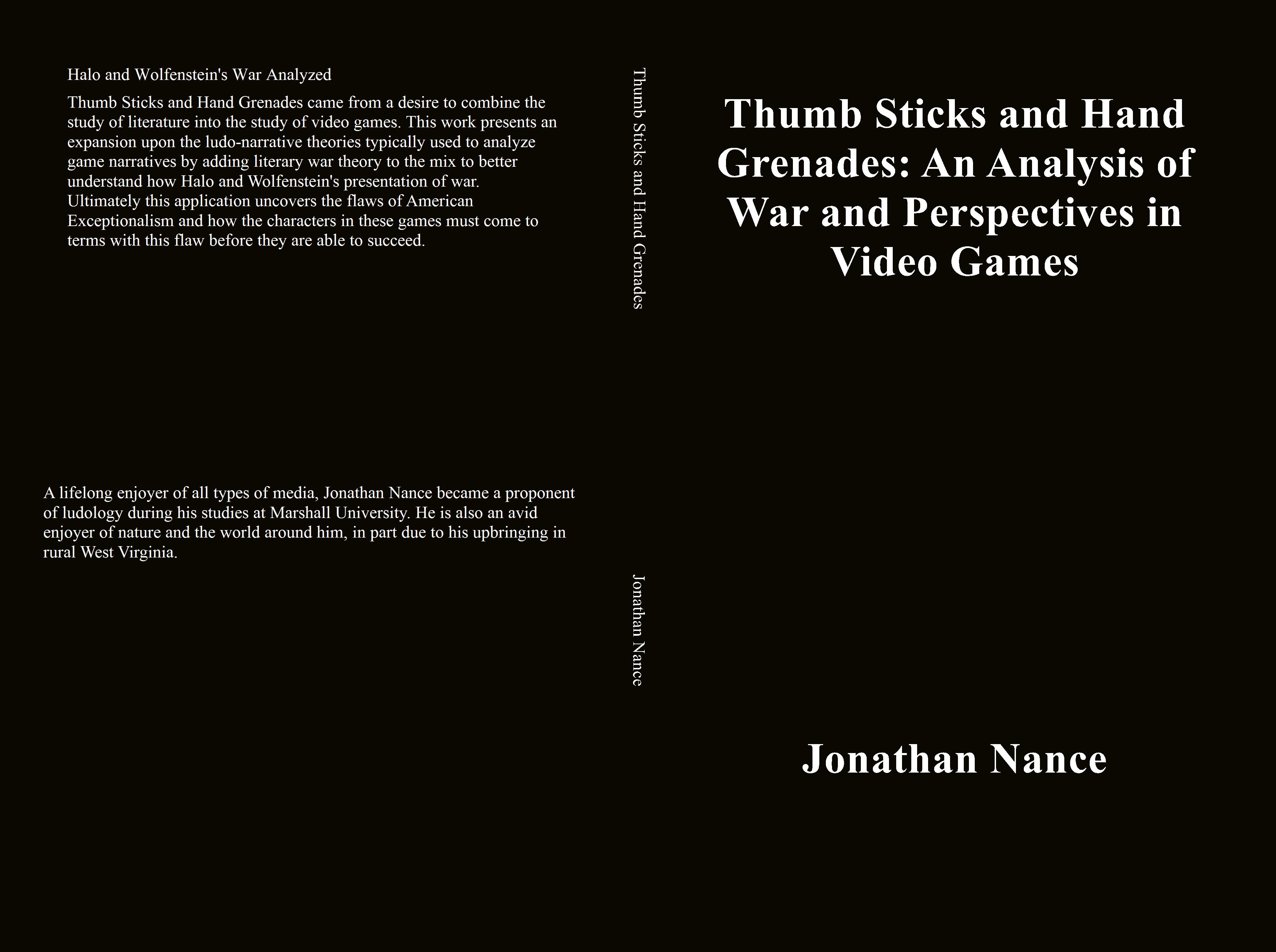 Thumb Sticks and Hand Grenades came from a desire to combine the study of literature into the study of video games. This work presents an expansion upon the ludo-narrative theories typically used to analyze game narratives by adding literary war theory to the mix to better understand how Halo and Wolfenstein's presentation of war. Ultimately this application uncovers the flaws of American Exceptionalism and how the characters in these games must come to terms with this flaw before they are able to succeed.