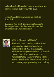 Sholom's cute, comical, and at times heartrending sketches have been published in ESRA, HaMizrachi, Mishpacha Magazine and the LA Jewish Home. One of his stories aired on National Public Radio's "Public Story Teller." He lives in Florida with his wife and enjoys yoga, gardening and cooking.