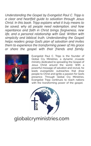 Understanding the Gospel by Evangelist Paul C. Tripp is a clear and heartfelt guide to salvation through Jesus Christ. In this book, Tripp explains what it truly means to be saved, why all people need redemption, and how repentance and faith in Christ brings forgiveness, new life, and a personal relationship with God. Written with simplicity and biblical truth, Understanding the Gospel helps readers grasp God's plan of salvation and invites them to experience the transforming power of His grace or share the gospel with their friends and family.